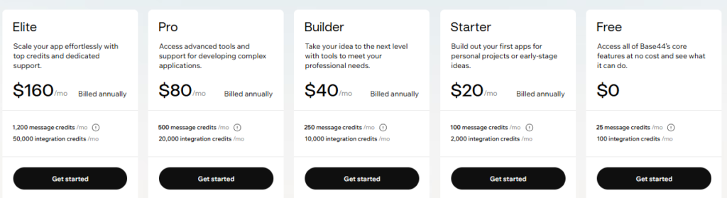 Base44 pricing ranges from completely free up to $200 monthly for the Elite tier [7].